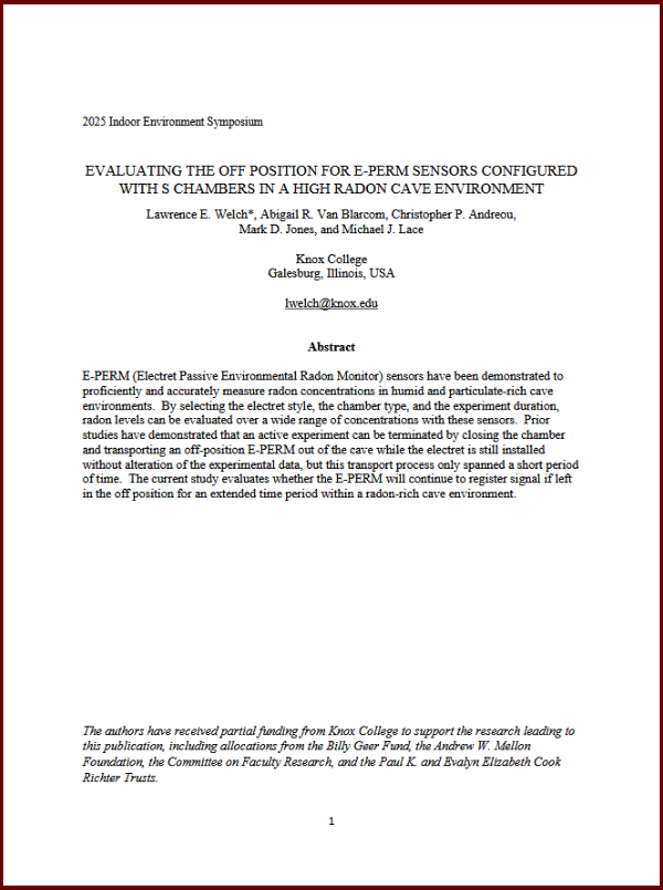 Evaluating the Off Position for E-PERM Sensors Configured with S Chambers in a High Radon Cave Environment