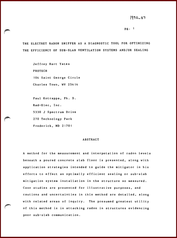 The Electret Radon Sniffer as a Diagnostic Tool for Optimizing the Efficiency of Sub-Slab Ventilation Systems and/or Sealing